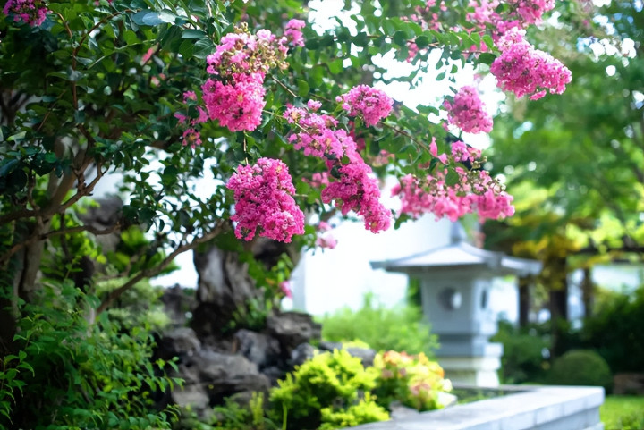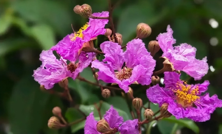 夏夜的风掠过上海植物园的紫薇花丛,细碎的花瓣在暮色里轻轻颤动,像揉碎的星光落满枝头,白日里游人的赞叹已沉淀成露水,沾在娇艳的花瓣上,晶莹得像未说出口的晚安。